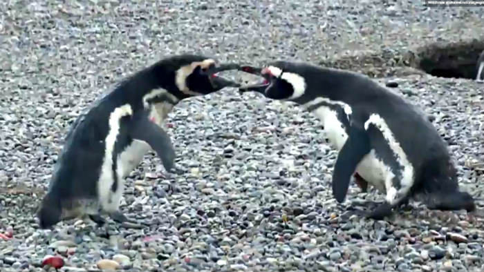 El hecho termina con una brutal pelea entre los dos pingüinos, que se agreden durante minutos hasta acabar heridos y ensangrentados.