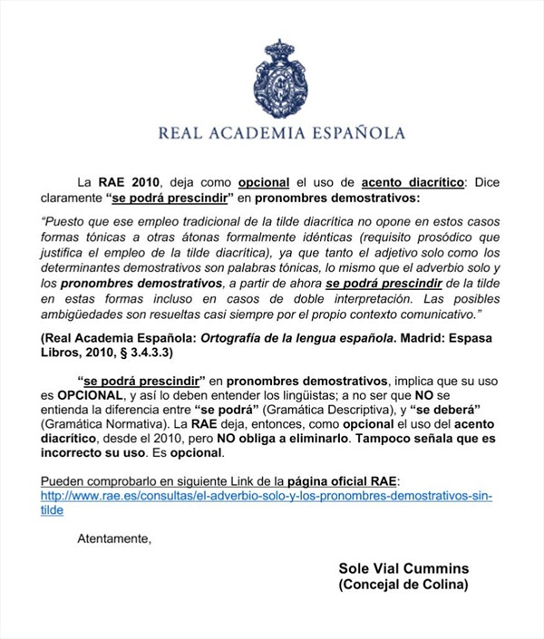 No obstante, luego de publicado este documento, fue la propia RAE quien se refirió al tema y desmintió a Vial.