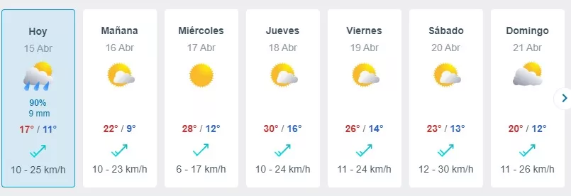 Dicho esto, cómo se puede ver en la gráfica, dentro de los próximos el calor volverá a estar presente en la Región Metropolitana, por lo menos el próximo miércoles 17 de abril.