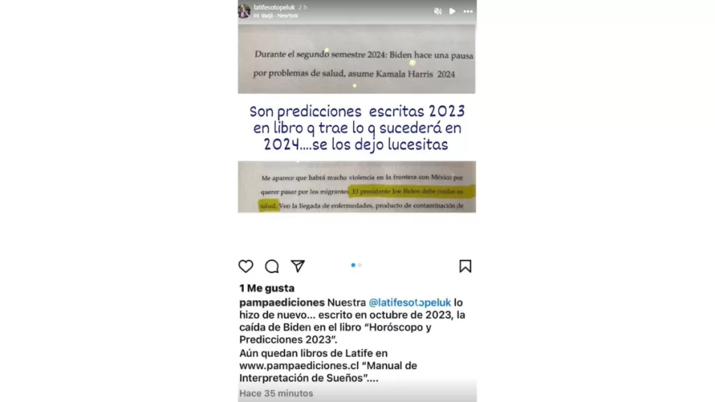 ¡Acertó nuevamente! Latife Soto sorprendió a sus seguidores con predicción política. Y es que hace un año, aproximadamente, la popular médium chilena ya había adelantado la baja de Joe Biden en medio de la carrera presidencial, tal como se confirmó este domingo 21 de julio.