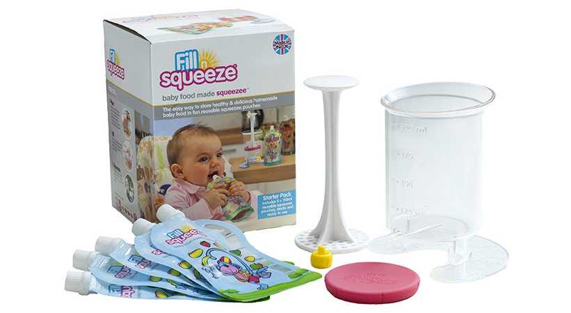 El set Fill’n Squeeze incluye un contenedor de plástico que permite guardar papillas en forma hermética y sin aire en su interior. Junto con esto vienen unos pomos reutilizables, donde puedes echar compota de fruta o yogur para el postre. También se agrega un práctico bolso fabricado con un material que conserva la temperatura. Todo por gentileza de Bebé Urbano, la tienda online que distribuye en todo el país a través de www.bebeurbano.cl.