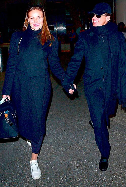 Varios medios internacionales captaron a la pareja en el Aeropuerto de Los Ángeles, donde no se separaron en ningún momento, incluso le sonrieron a los paparazzis.