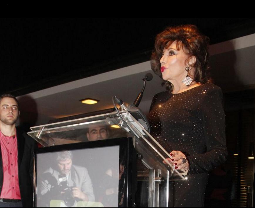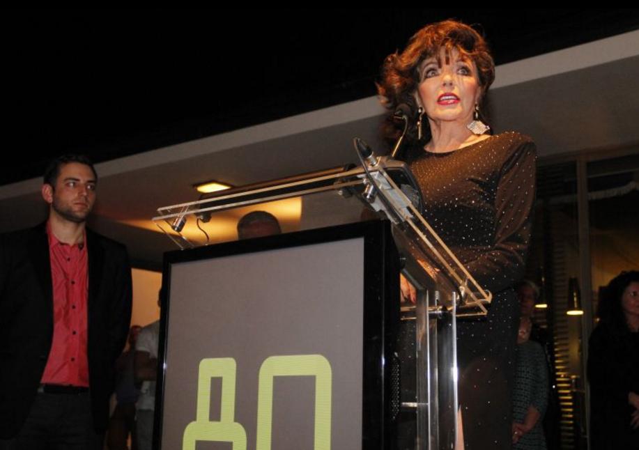 ¡La diva de los 80 está en Chile! Joan Collin visitó el Museo de la Moda, en donde estuvo encargada de presentar en el lanzamiento del libro del Presidente de la Fundación, Jorge Yarur “Catálogo 80” el cual recopila el llamativo vestuario de la época, muebles y otros objetos.