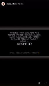 «No suelo hacer esto, pero pido respeto a todos los que hablan sin saber para hacer daño», dijo Alexis Sánchez a través de su cuenta de Instagram, refiriéndose a su término con Mayte Rodríguez.
