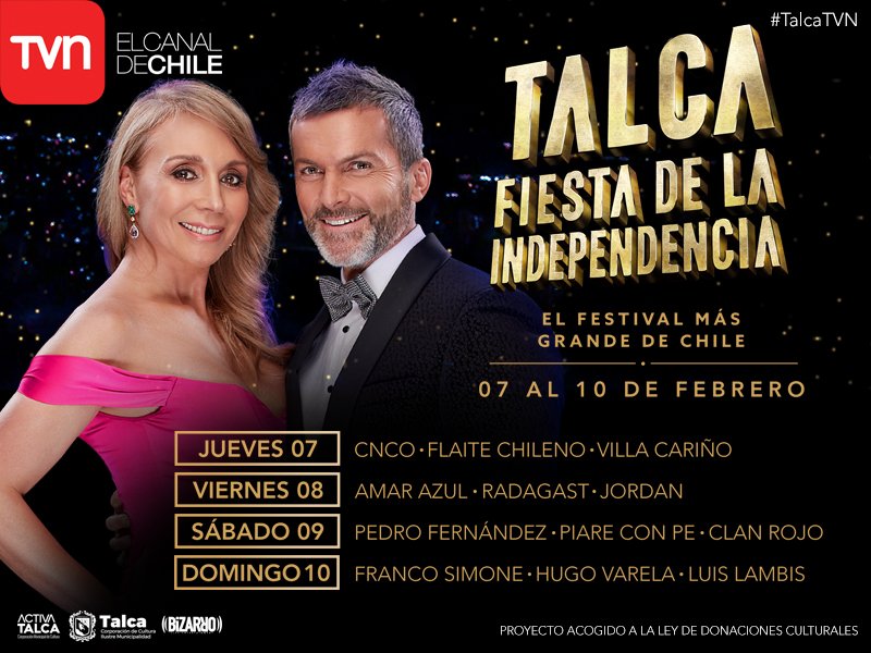 Hoy se lanzó oficialmente la parrilla de artista de la Fiesta de la Independencia de Talca, evento que se desarrollará entre el 7 y el 10 de febrero, y será transmitido por TVN.