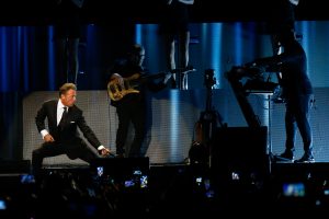 A pesar de que el artista mexicano llegó con 25 minutos de retraso, conquistó al público cantando «Si te vas». Y es que la tensión iba en aumento por la impuntualidad del cantante. Ya que tiene antecedentes de dejar «pagando» a su público.