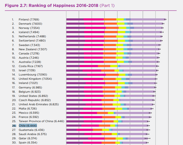 También se incluye la eficiencia de los gobiernos, el apoyo social, la corrupción, las expectativas de vida y los niveles de educación.