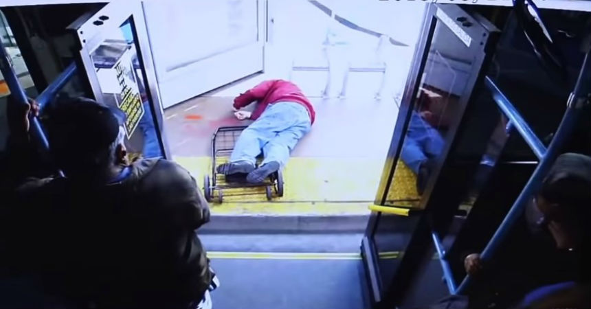 La policía liberó las imágenes del momento en que la mujer lanzó al anciano desde el autobús. Como se puede apreciar, ni siquiera le ofreció ayuda.