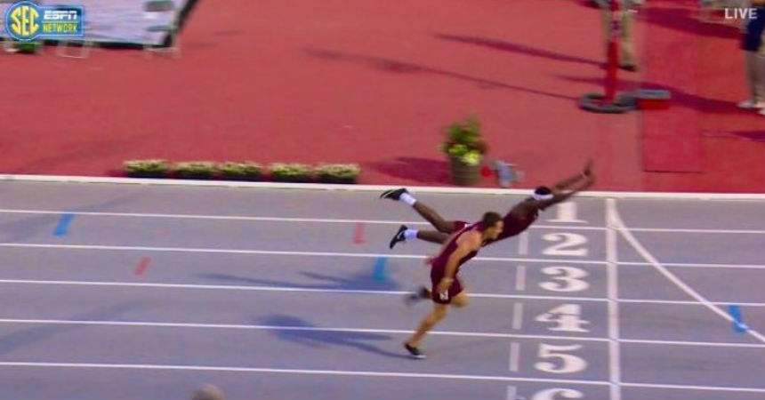 Sucedió el fin de semana en el Campeonato de Atletismo de la conferencia sureste de Estados Unidos, mientras se desarrollaba la competencia de los 400 metros con vallas. Al finalizar la carrera, Infinite Tucker, representante del Team Texas A&M, realizó una espectacular pirueta para cruzar la meta y quedarse con el primer lugar.