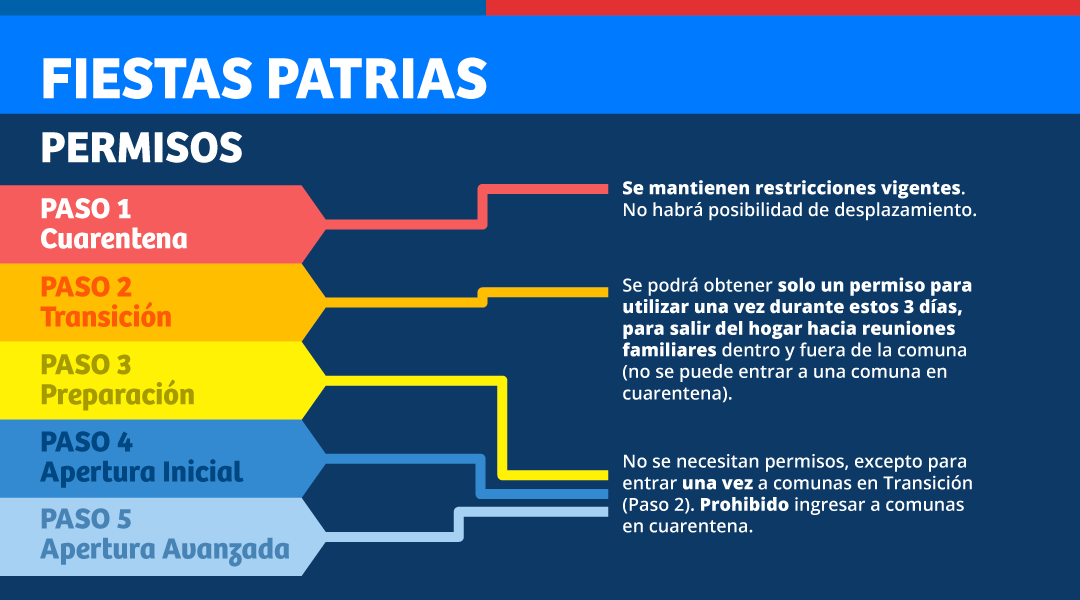 Para quienes vivan en comunas que están en fase 1, se mantienen las restricciones que hoy están vigentes, por lo que no se podrá acceder a permisos especiales los días 18, 19 y 20 de septiembre.
