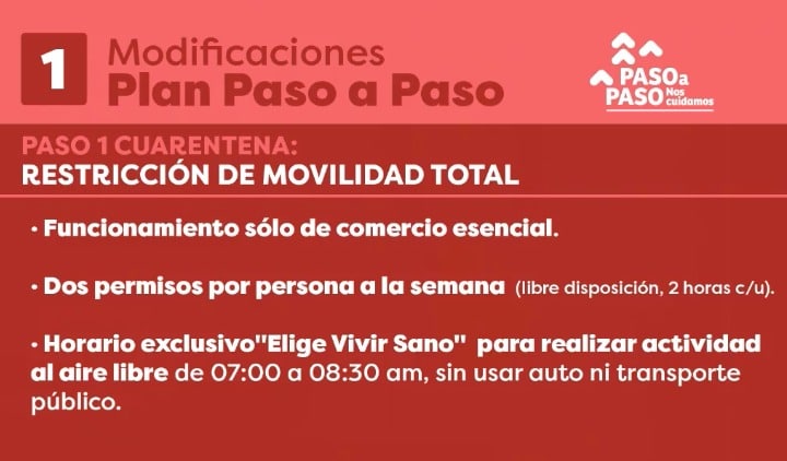 - En comunas con cuarentena, solo se podrán sacar dos permisos, que tendrán un máximo de dos horas de duración y serán de libre disposición.