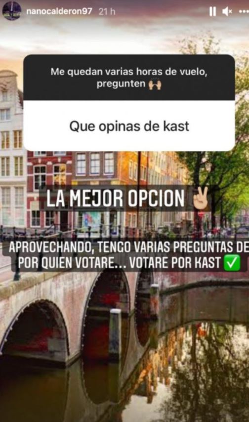 La segunda figura pública es Nano Calderón; el hijo de Raquel Argandoña manifestó hace algunas semanas que votará por José Antonio Kast.