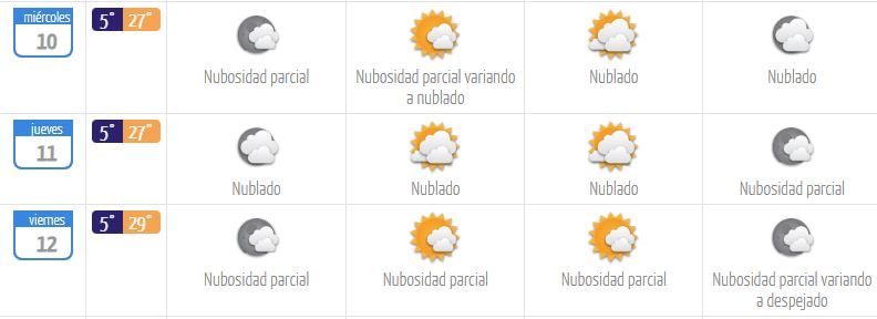 Pronóstico del tiempo para los días, 9, 10,11 y 12 de mayo