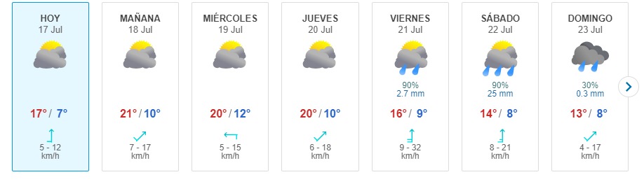 Por otro lado, según lo pronosticado por la entidad, mañana martes 18 de julio tampoco se harán sentir las precipitaciones. De hecho, la mínima subirá a 10 grados, mientras que la máxima llegará a los 21°C.