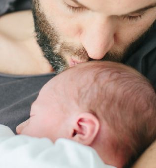El ingenioso padre se dibuja un par de enormes ojos abiertos en sus párpados para hacer creer al niño que está despierto.